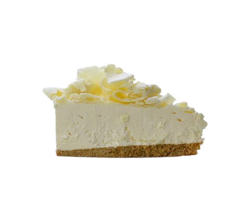 We blend cream cheese with cream and white chocolate and place it on a biscuit base. The cheesecake is finished with a sprinkling of white chocolate shavings.