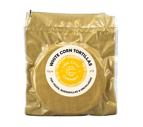 13 x 15cm white corn tortillas, essential for making large tacos, quesadillas, enchiladas or mopping up sauces and when a little older fry for tostadas, totopos, flautas and crispy tacos.